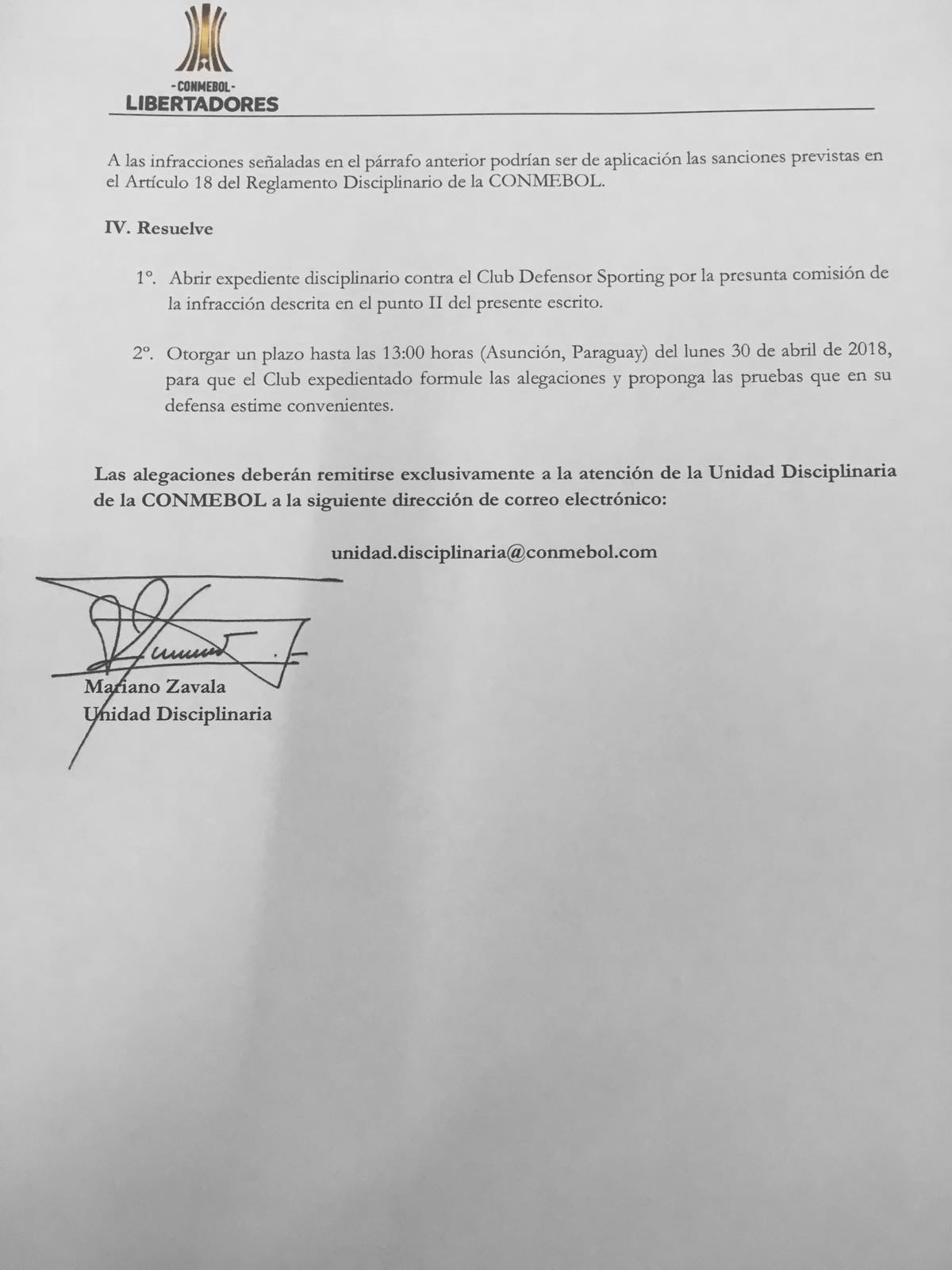 Conmebol inició procedimiento disciplinario contra el club