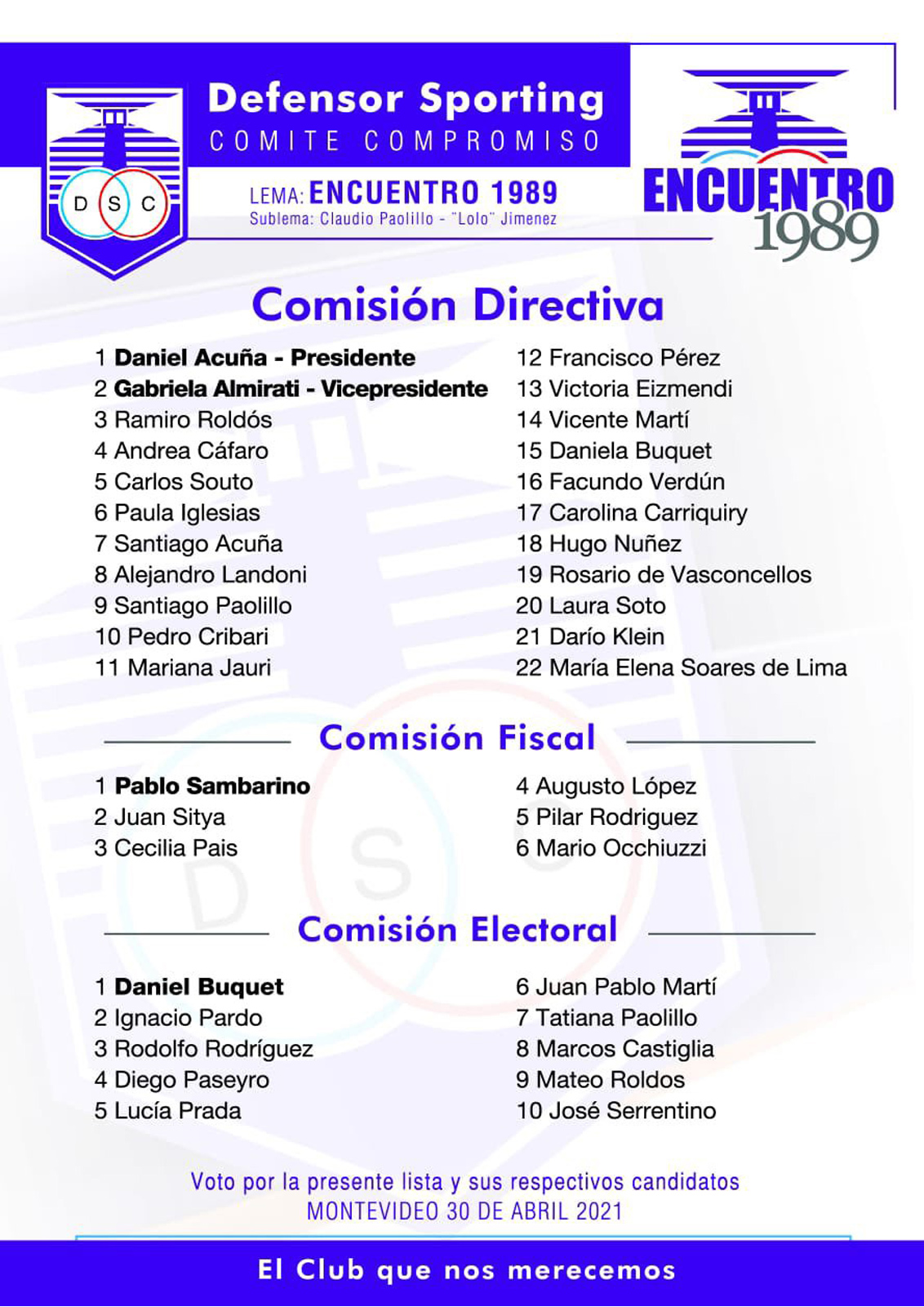 Se solicita a todos los asistentes que, de recibir el diagnóstico positivo de COVID 19, dentro de los 15 días posteriores a la elección, lo informe inmediatamente al Club.